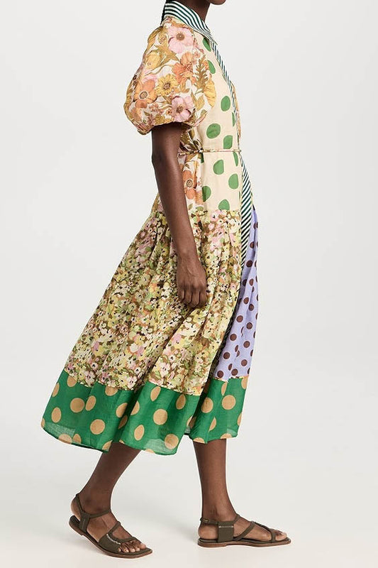 Green Muse Spliced Print Dress