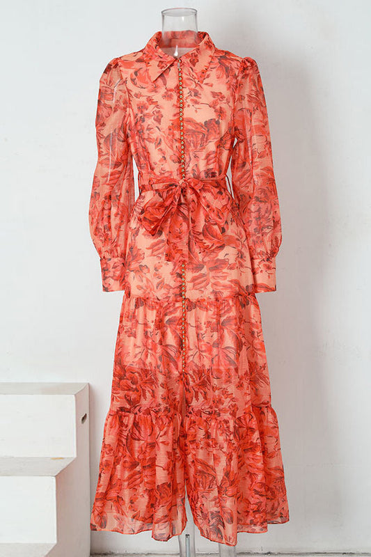 Renata Floral Printed Balloon Sleeves Midi Dress