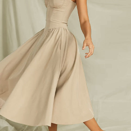 Bustier Pleated Tulle Fit & Flare Midi Dress