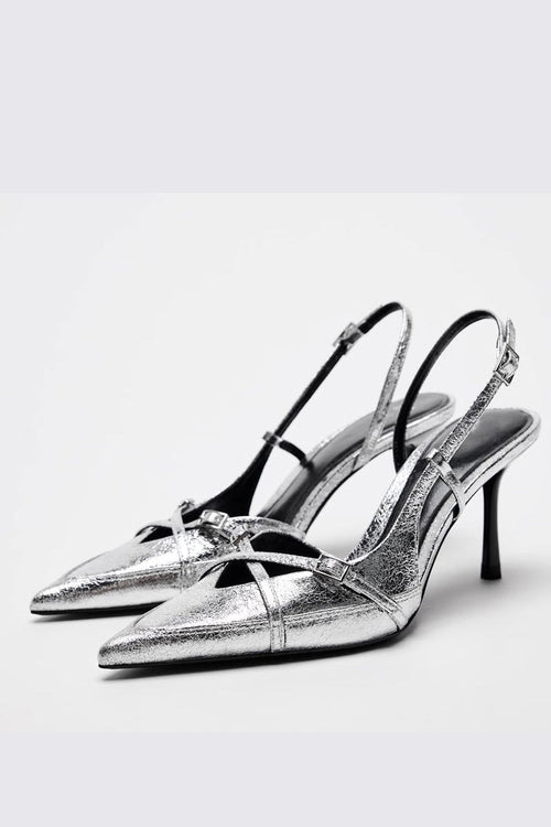 • Design: Pointed-toe mule shoes with buckle strap and side cut-out design