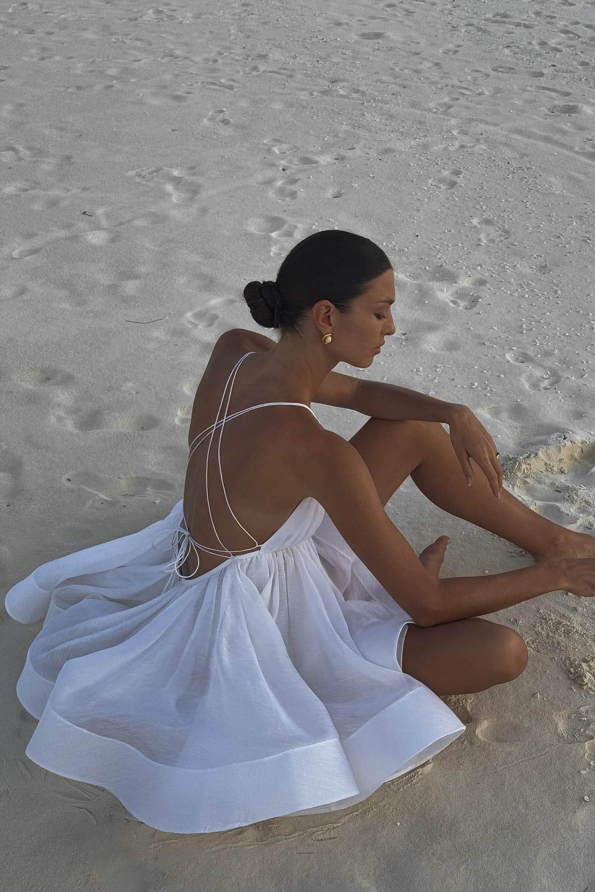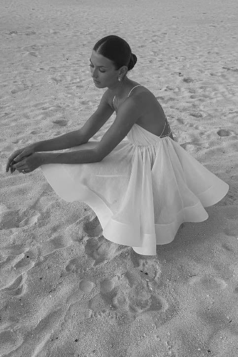 • Features: Deep V-neck, backless design, pleated mini skirt