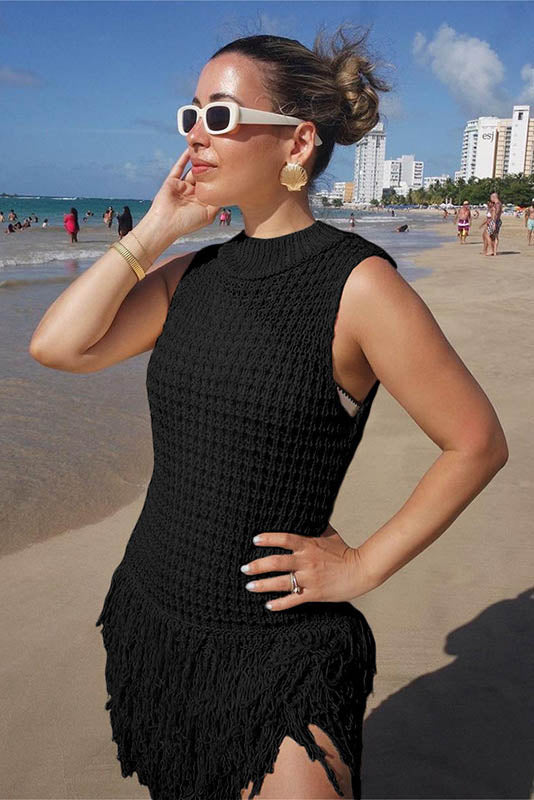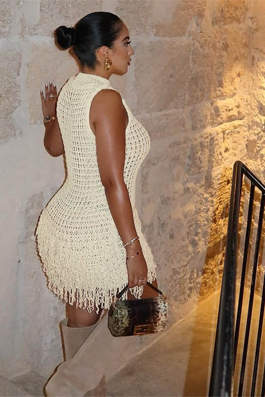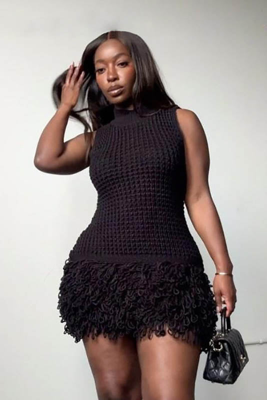 This summer, embrace elegance with this stylish sleeveless dress featuring a chic fringe and hollow-out design. The body-hugging fit accentuates your curves, while the unique patchwork adds a bold, fashionable touch. Perfect for a night out or a special occasion, this dress combines sensuality and sophistication, creating an effortlessly glamorous look. The lightweight fabric ensures comfort while maintaining a sleek and flattering silhouette.