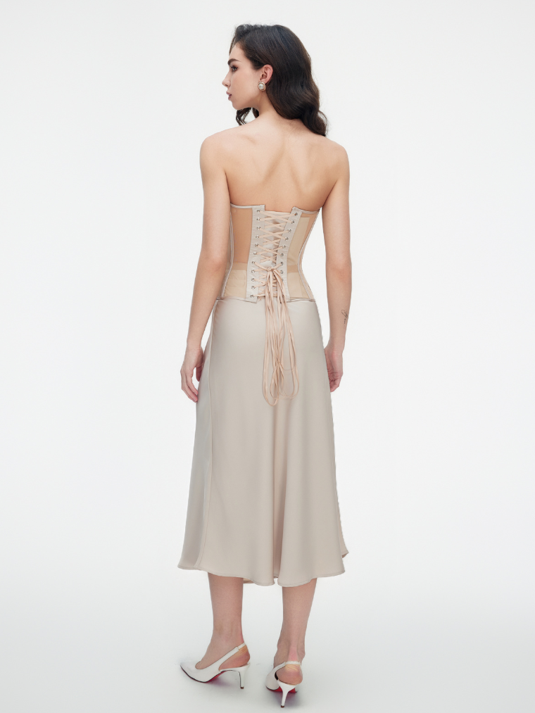 The corset cup has push-up inside, which can provide perfect support. Please check the size chart on the picture; choose a size according to your waist first and then bust size, if you have a larger bust, you can choose one size up; if you have a smaller bust, you can choose one size down . The back adopts a tethering method and can be adjusted 2-5 inches (5-15CM) according to the waist. The corsets are designed to fit snugly, we recommend sizing down if you are between sizes.
