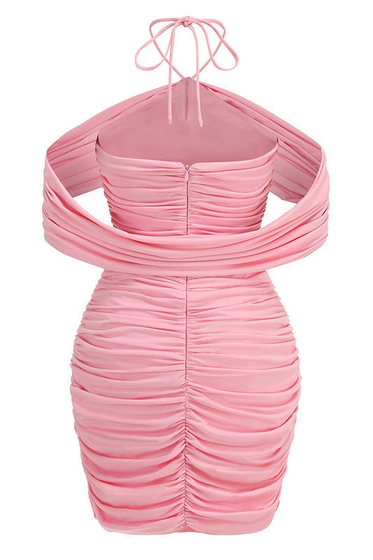 Designed with a chic halter neck and strapless cut, this ruched bodycon mini dress flatters every curve. Its sleek silhouette is perfect for summer parties, date nights, and stylish outings.